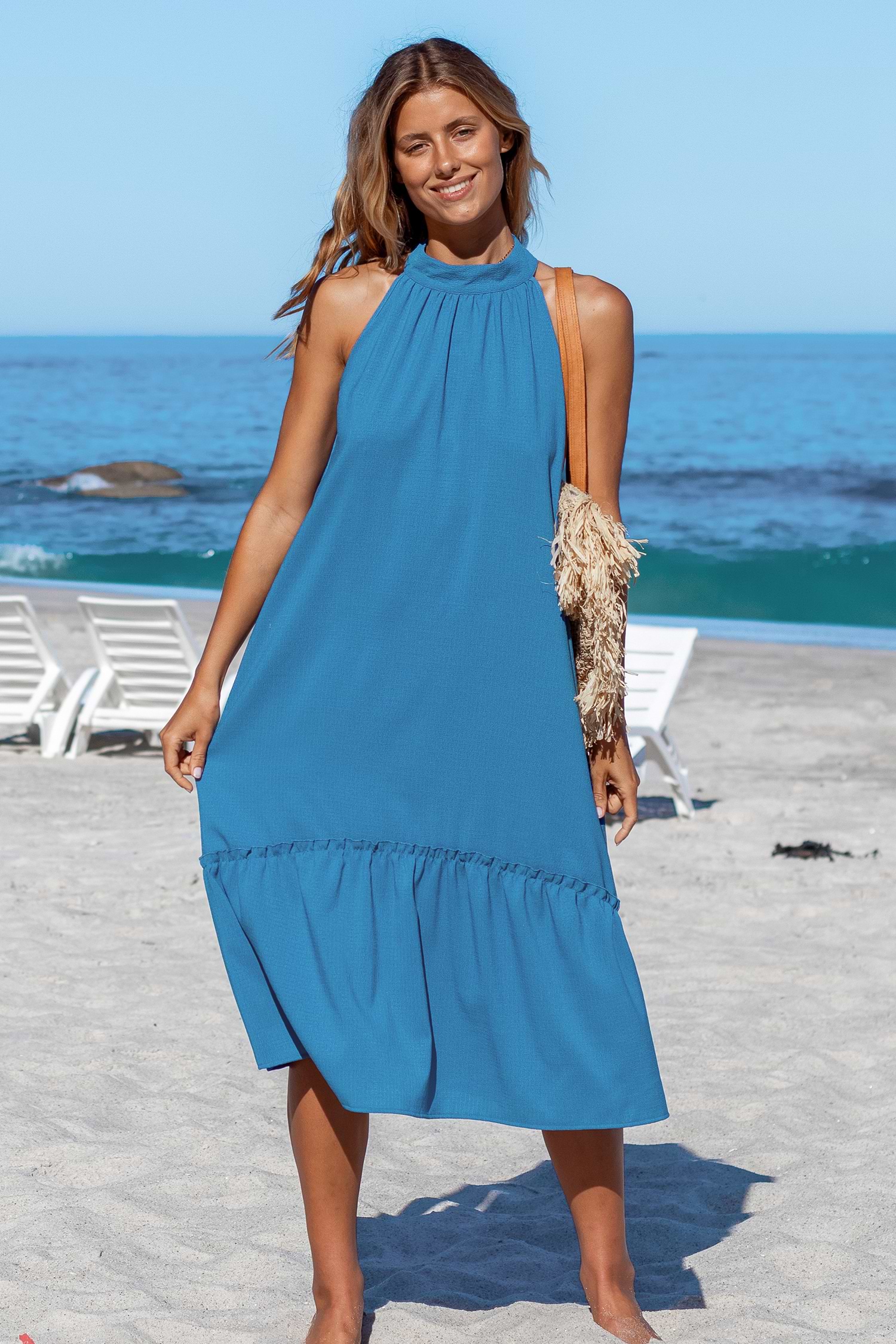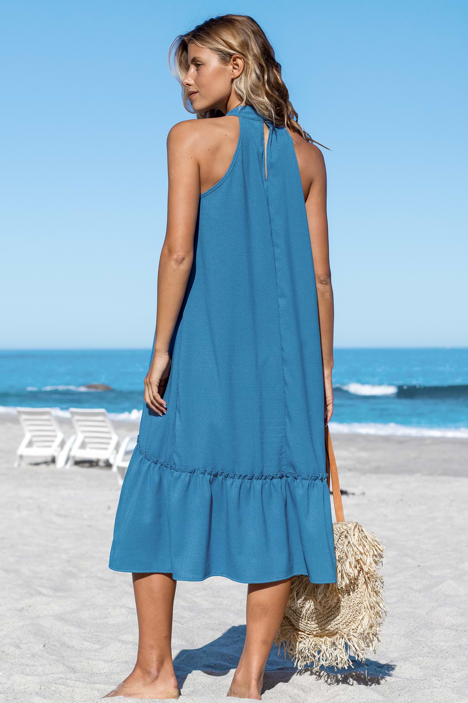 HomeSky Blue Halter Neck Sleeveless Maxi Dress