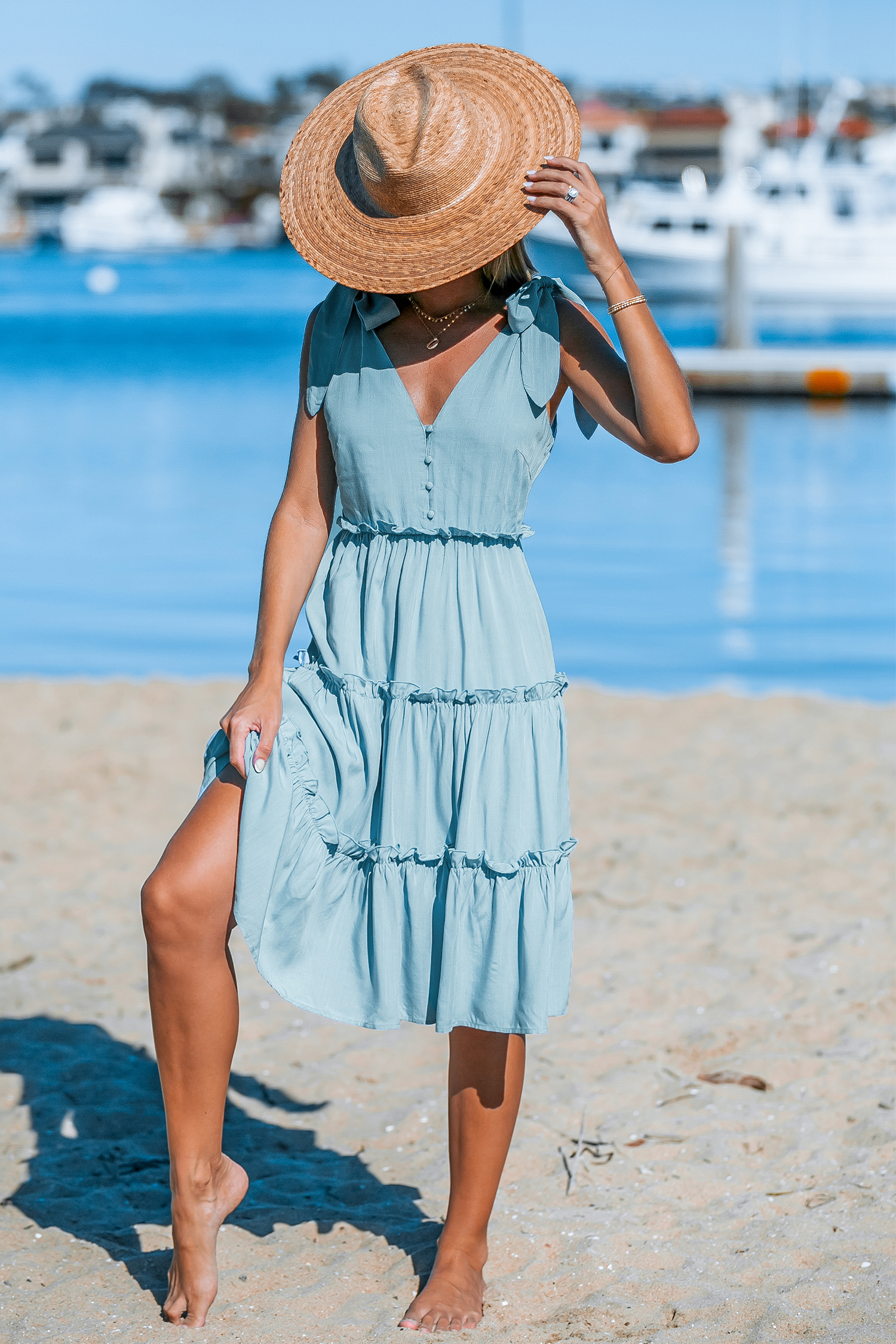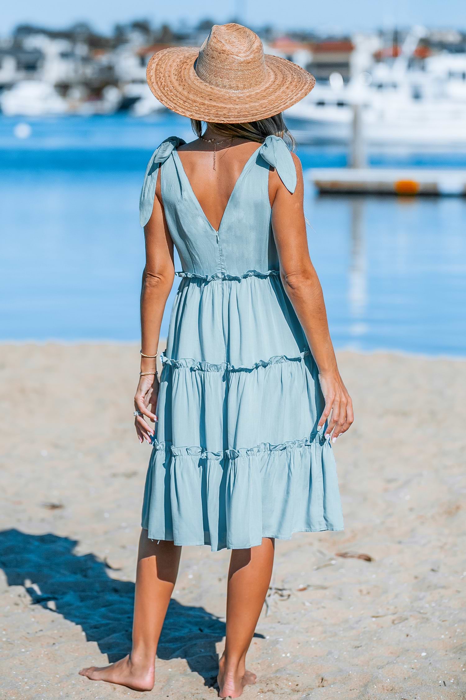 Sky Blue Shoulder Tie V-Neck Mini Dress