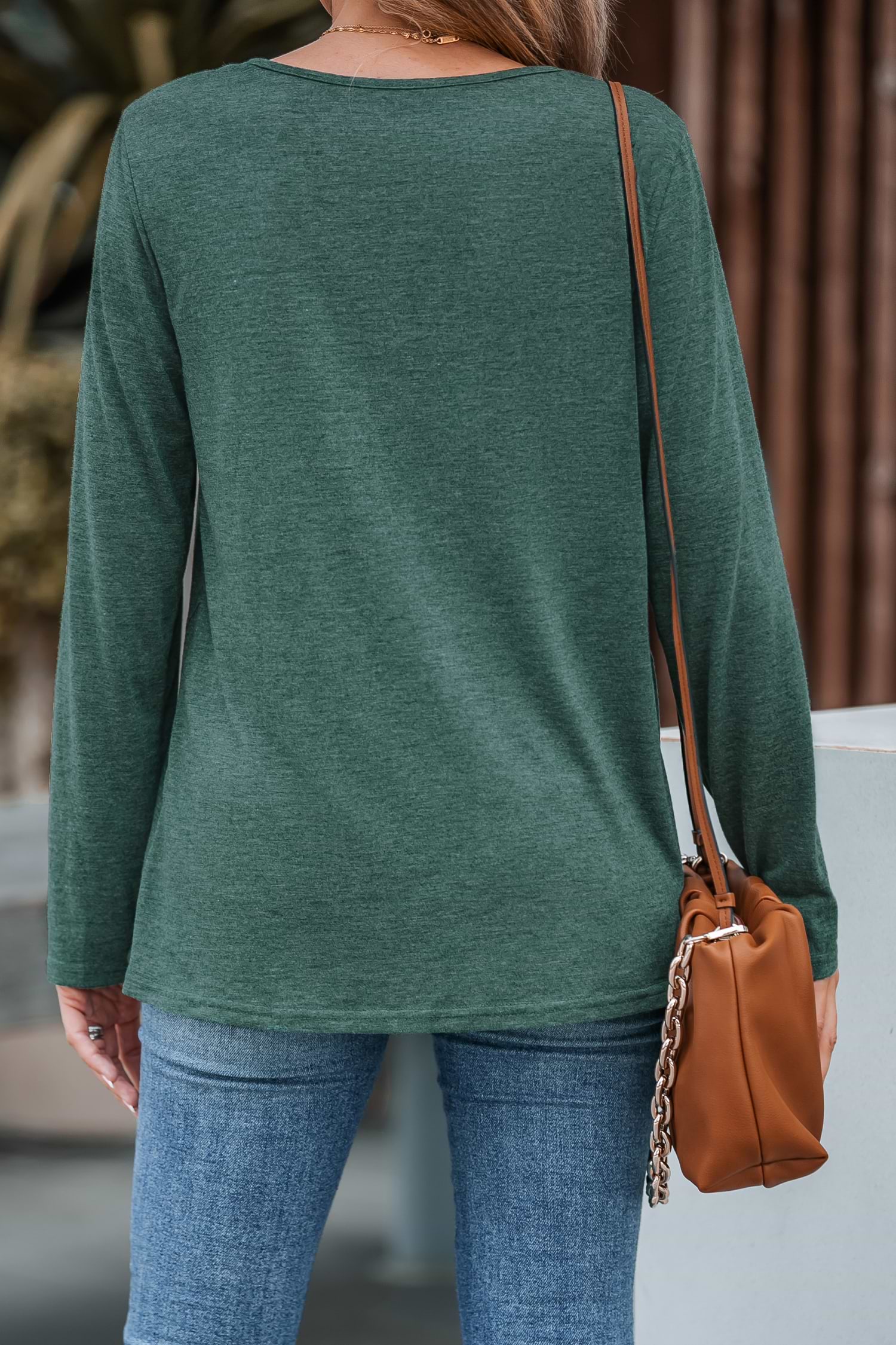 Wrap yourself in comfort and style with our Slub Knit Long Sleeve Henley Tee! With its cozy slub knit fabric, scalloped hem, and classic henley neckline, this tee is the perfect blend of casual and chic, making it a versatile and essential piece for your everyday wardrobe.