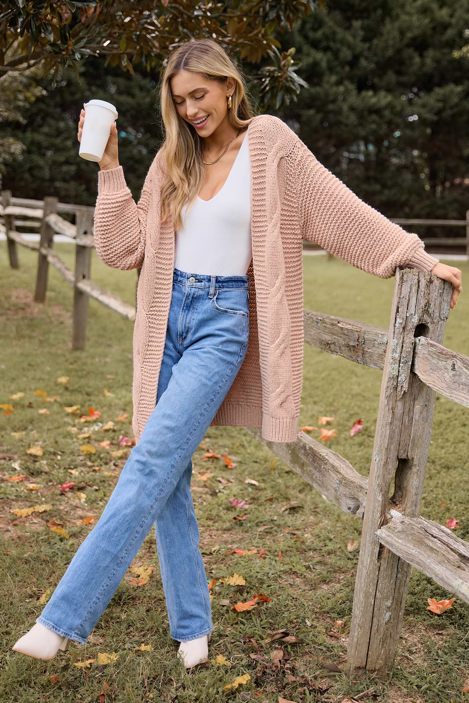 HomeSoft Pink Open Front Long Sleeve Knit Duster
