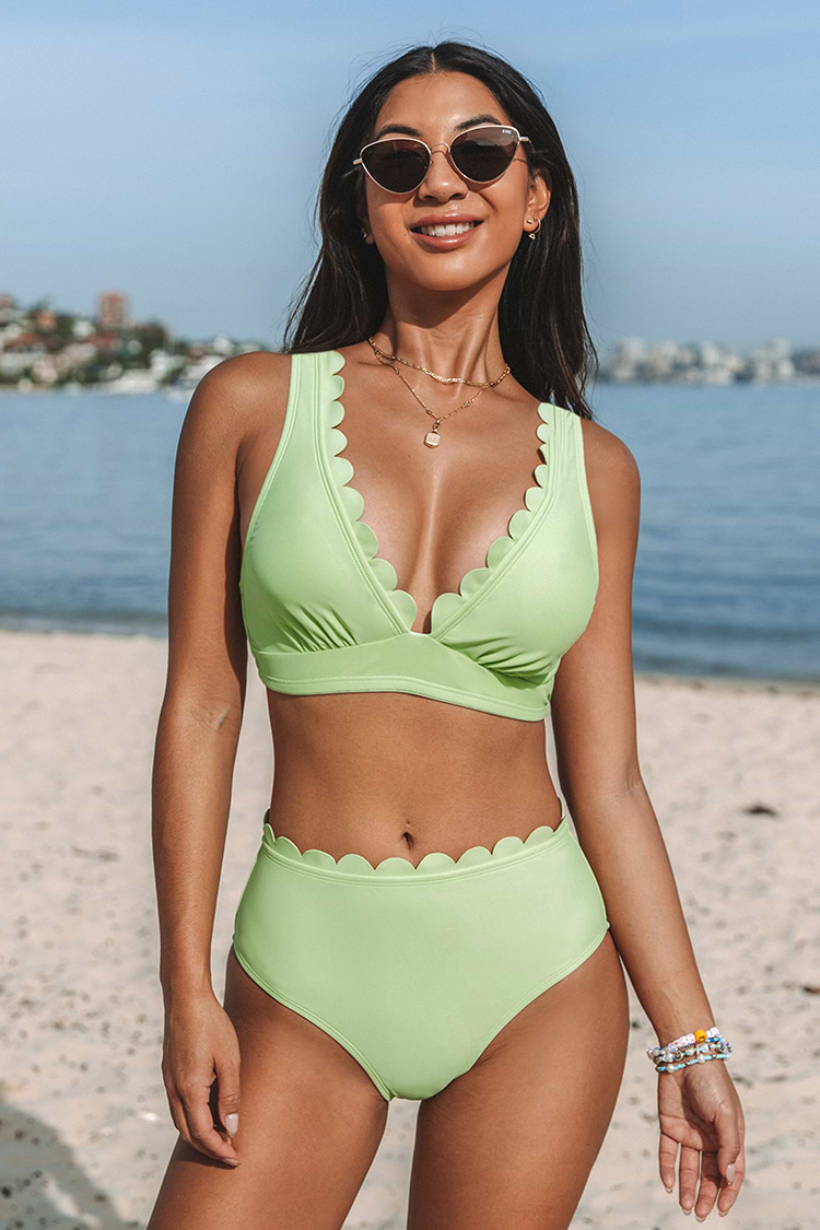 Strawberry Field Scalloped Tall Tri And Hipster Bikini Set