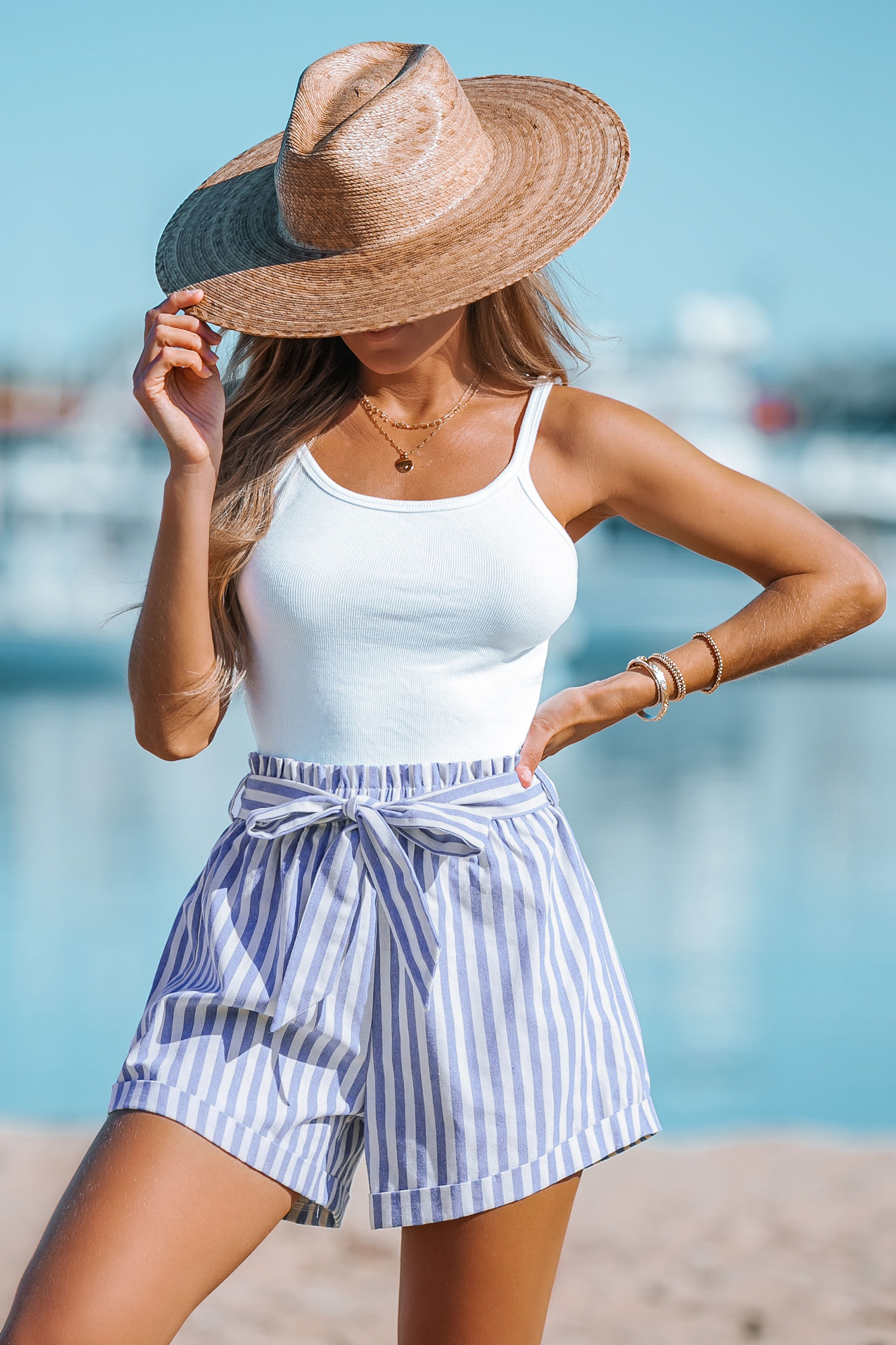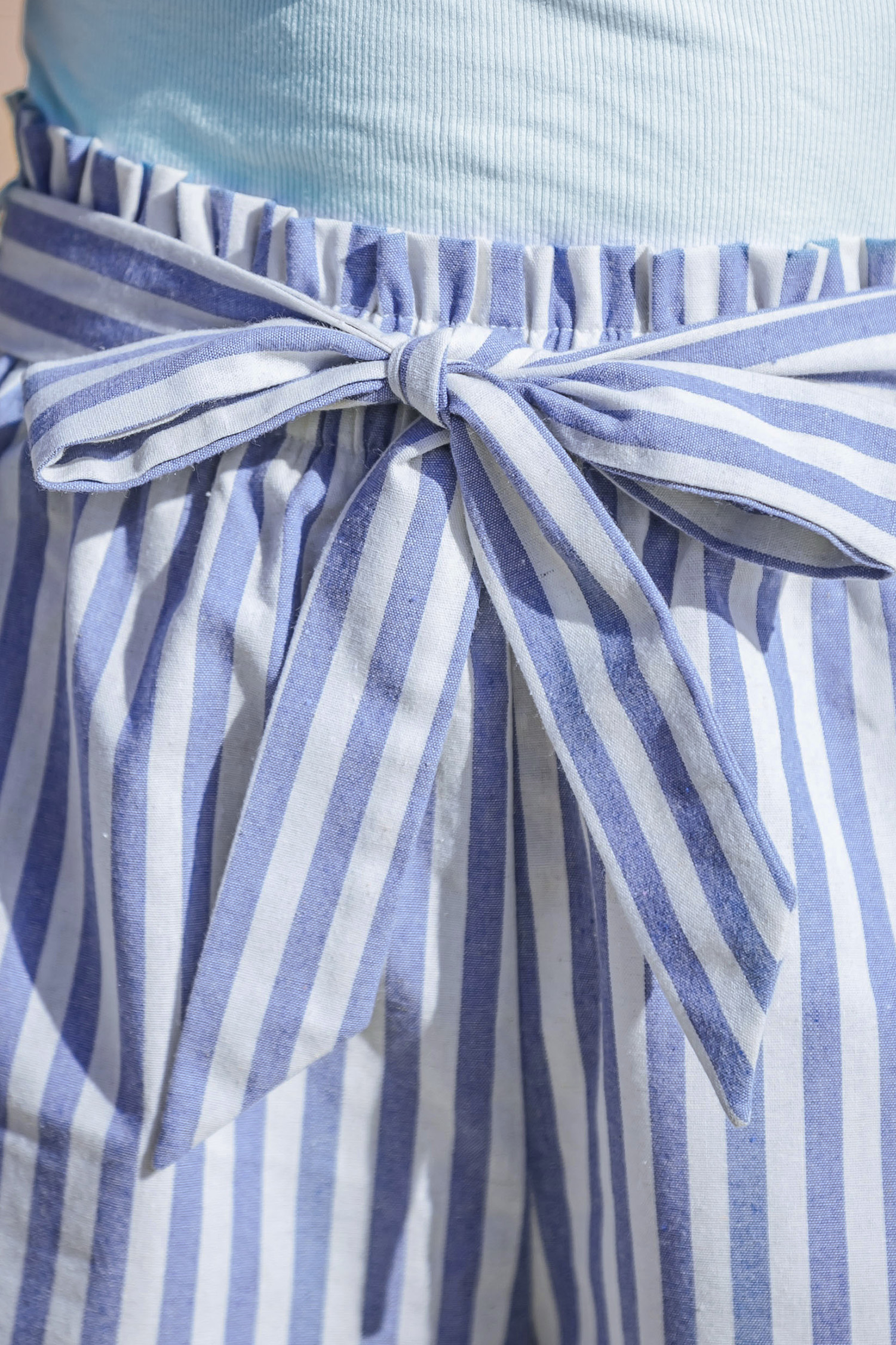 Striped Bow Belted Paperbag Shorts