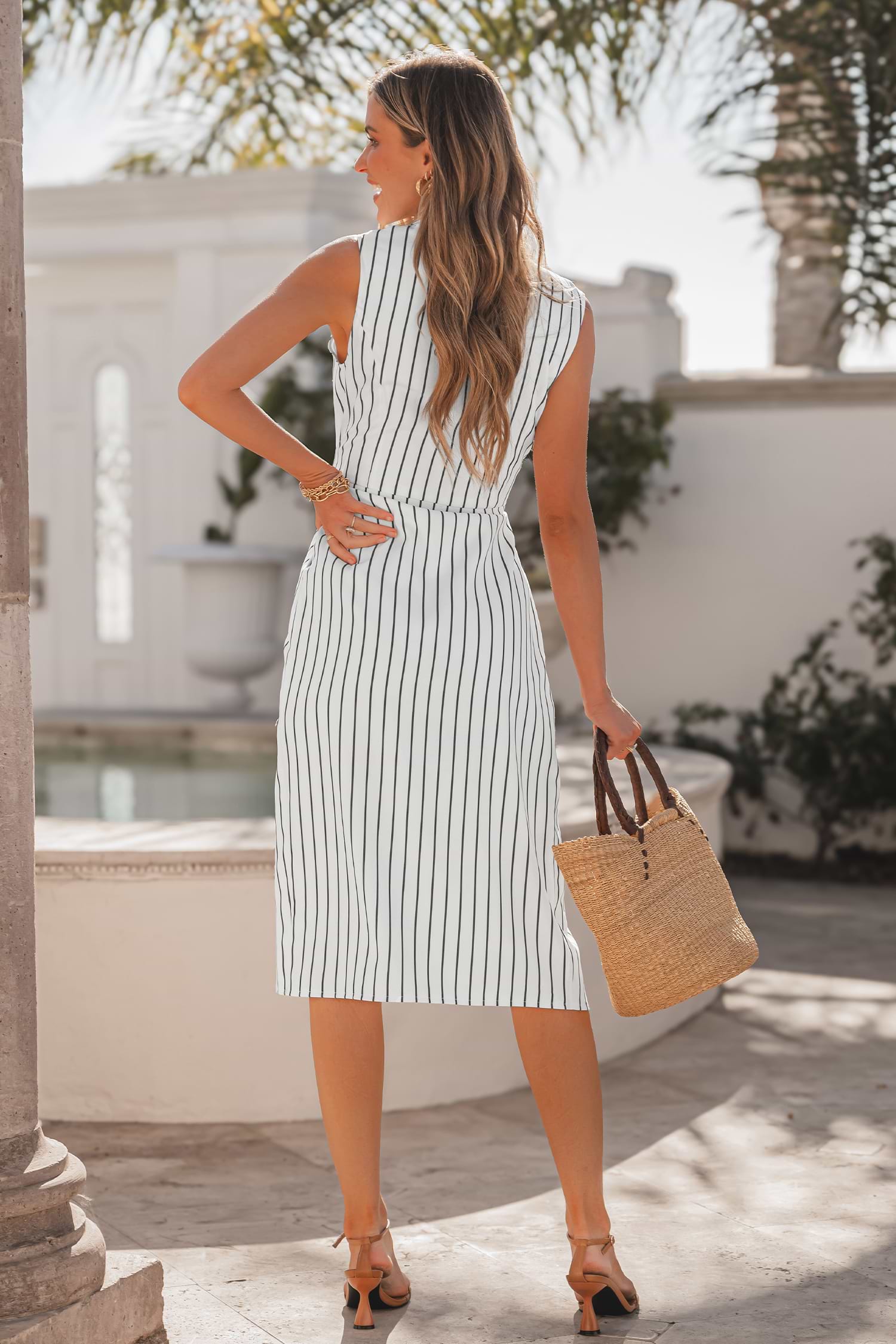 HomeStriped Collared Sleeveless Wrap Midi Dress