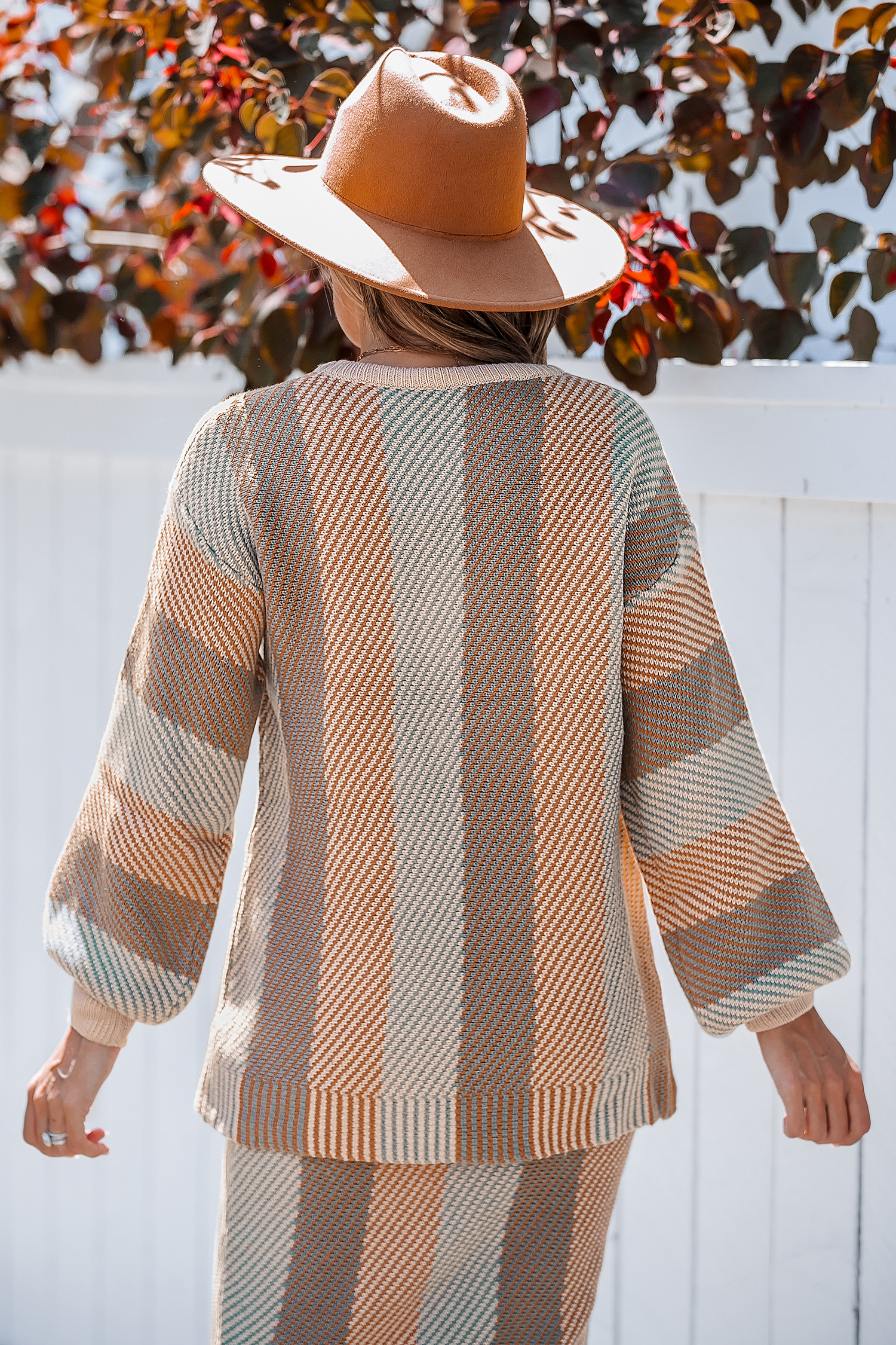 Striped Long Sleeve Sweater & Midi Sweater Skirt Set