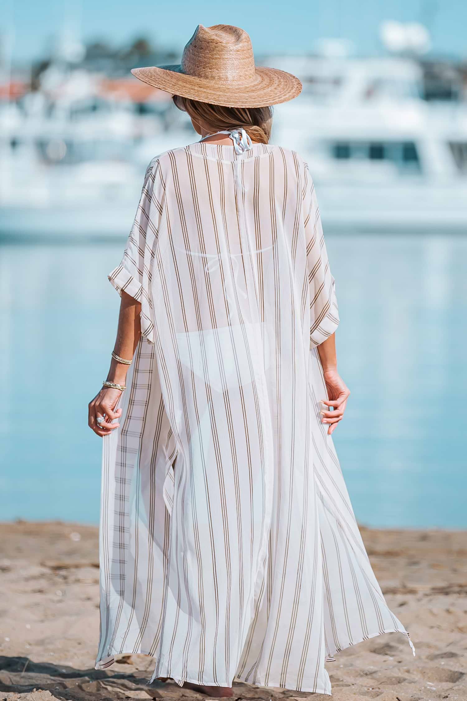Striped Open-Front Cover-Up Duster Kimono