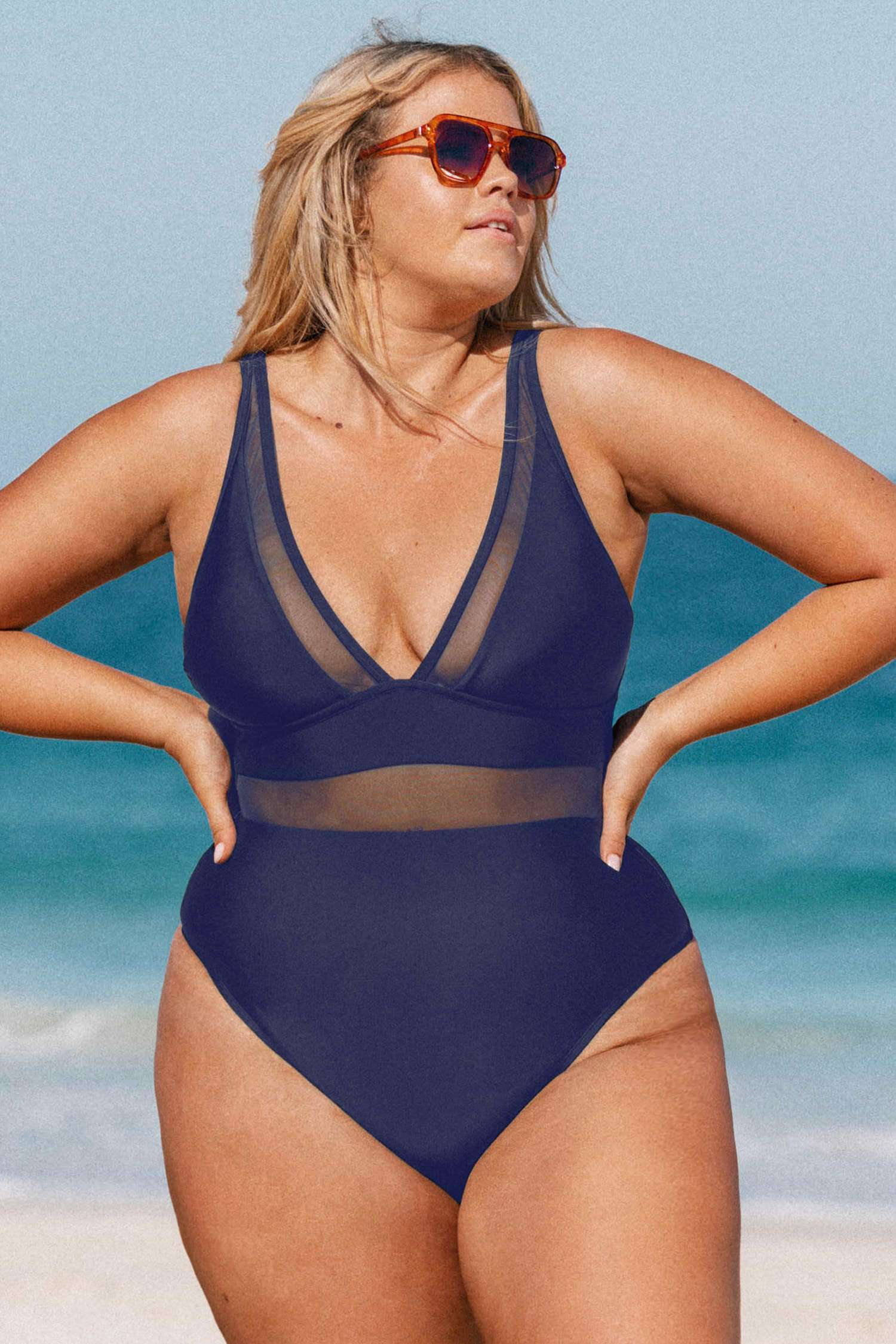 Summer Dreaming Plunge Mesh Plus Size One Piece Swimsuit