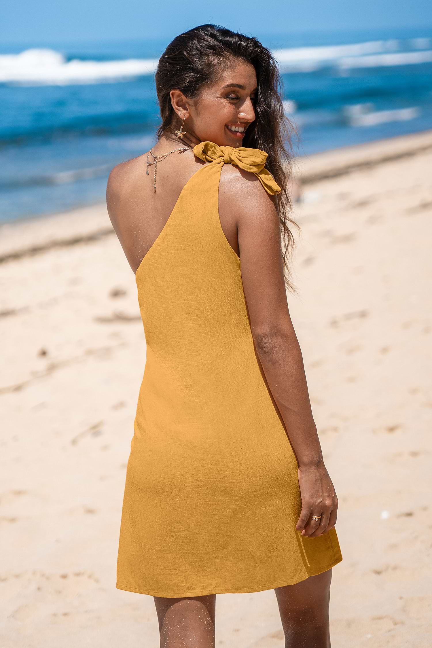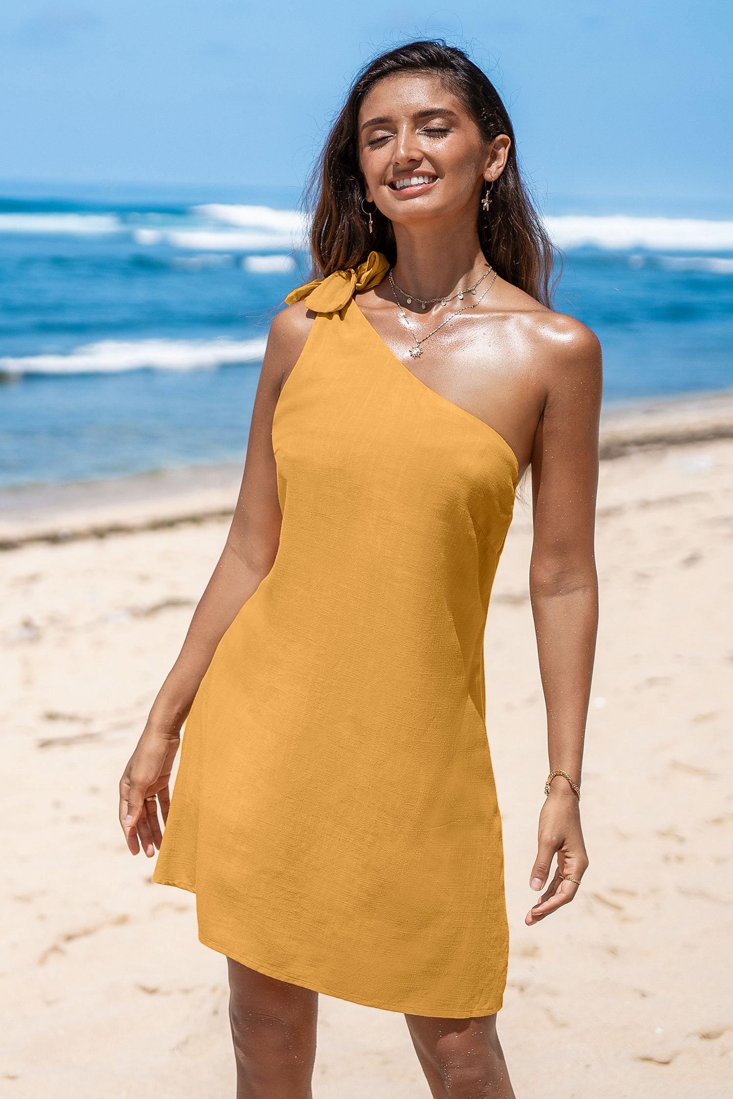 Sunflower Yellow One-Shoulder Mini Dress