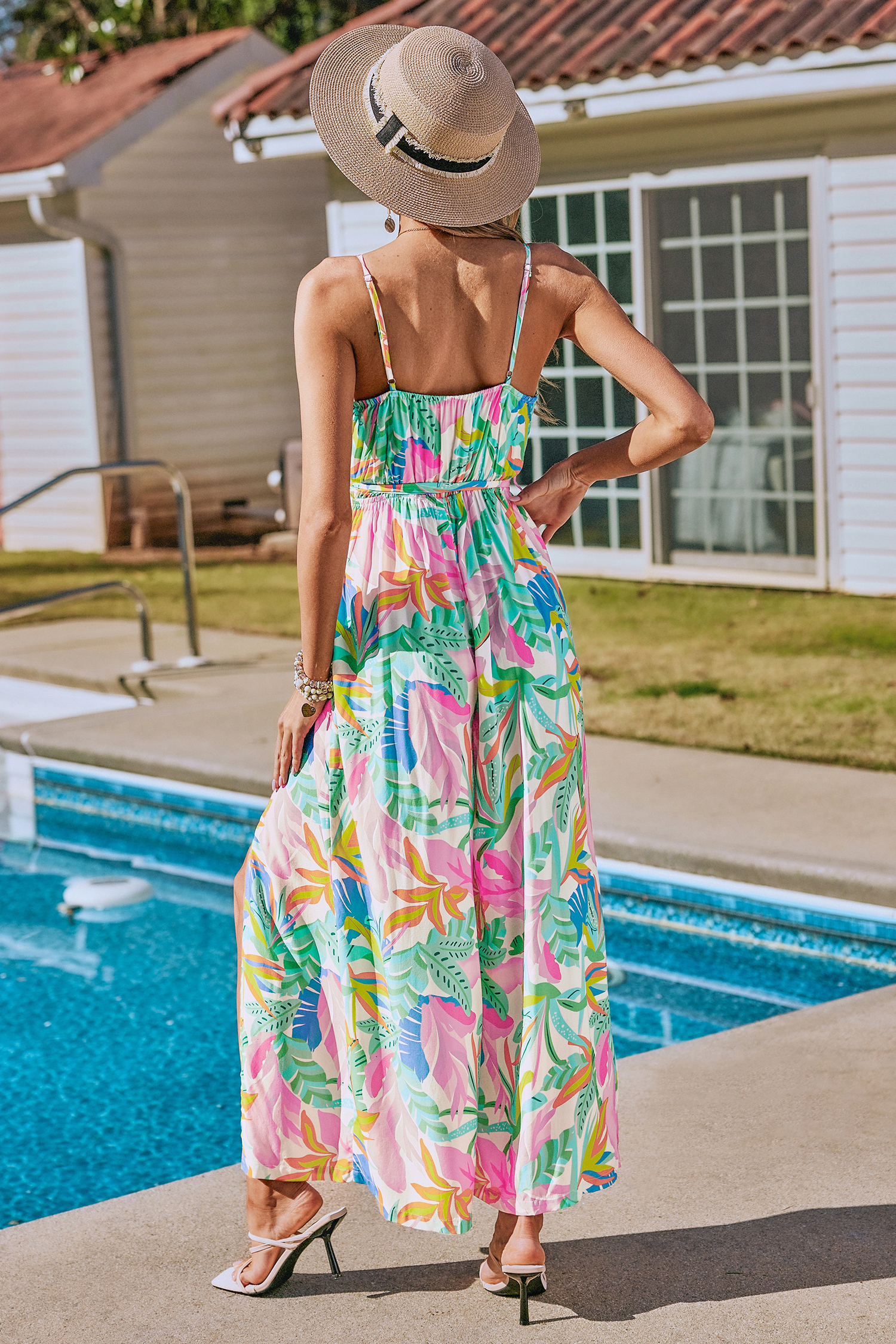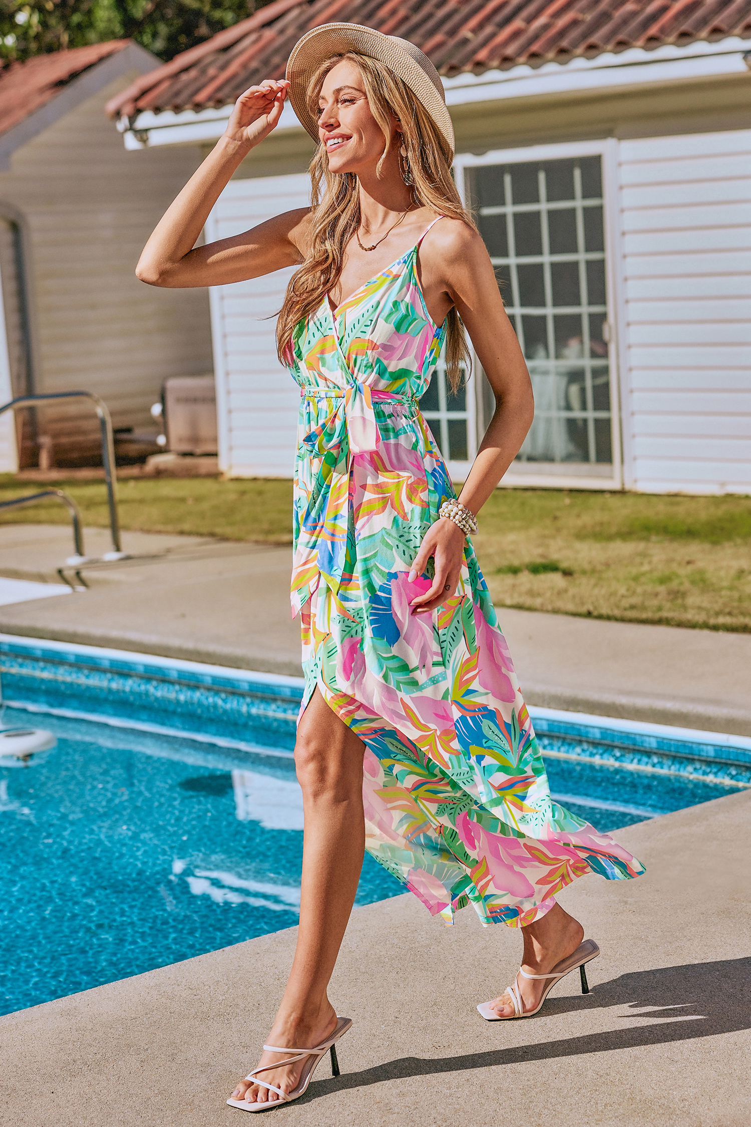 The Sweet Sunset Tropical Jumpsuit brings relaxed island vibes with a playful touch! It features a surplice neckline, sleeveless design, and wide legs made for easy movement and sunny days.