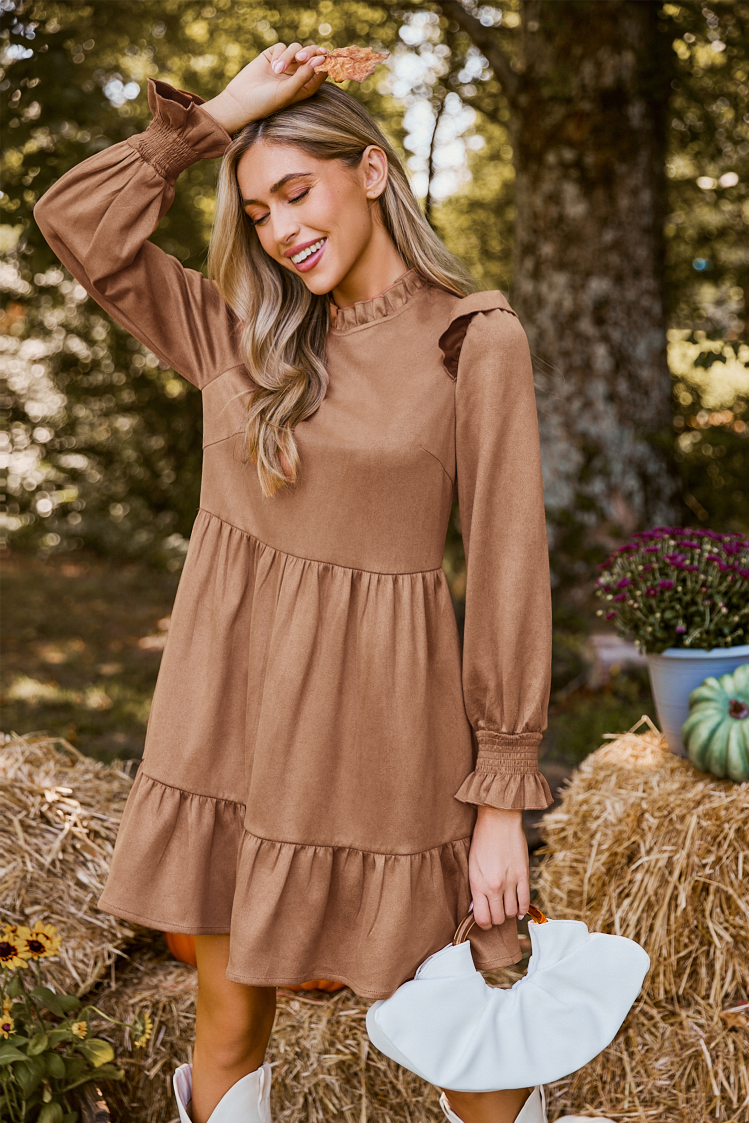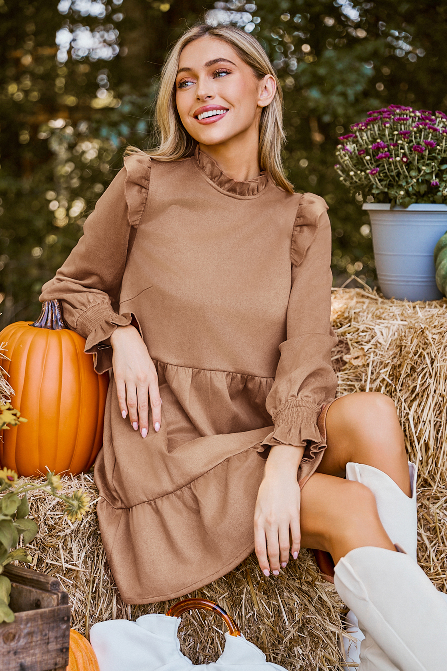 HomeTan Ruffled Blouson Sleeve Mini Dress