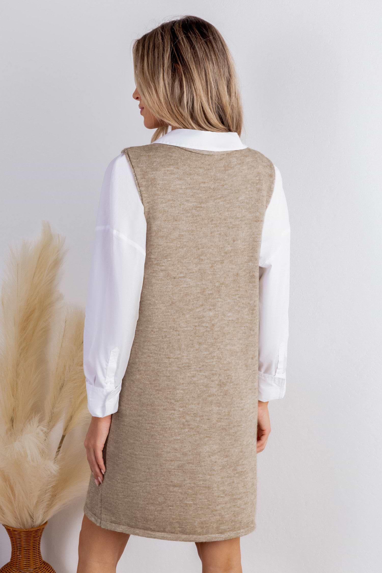 Morning Latte Beige Mini Sweater Dress