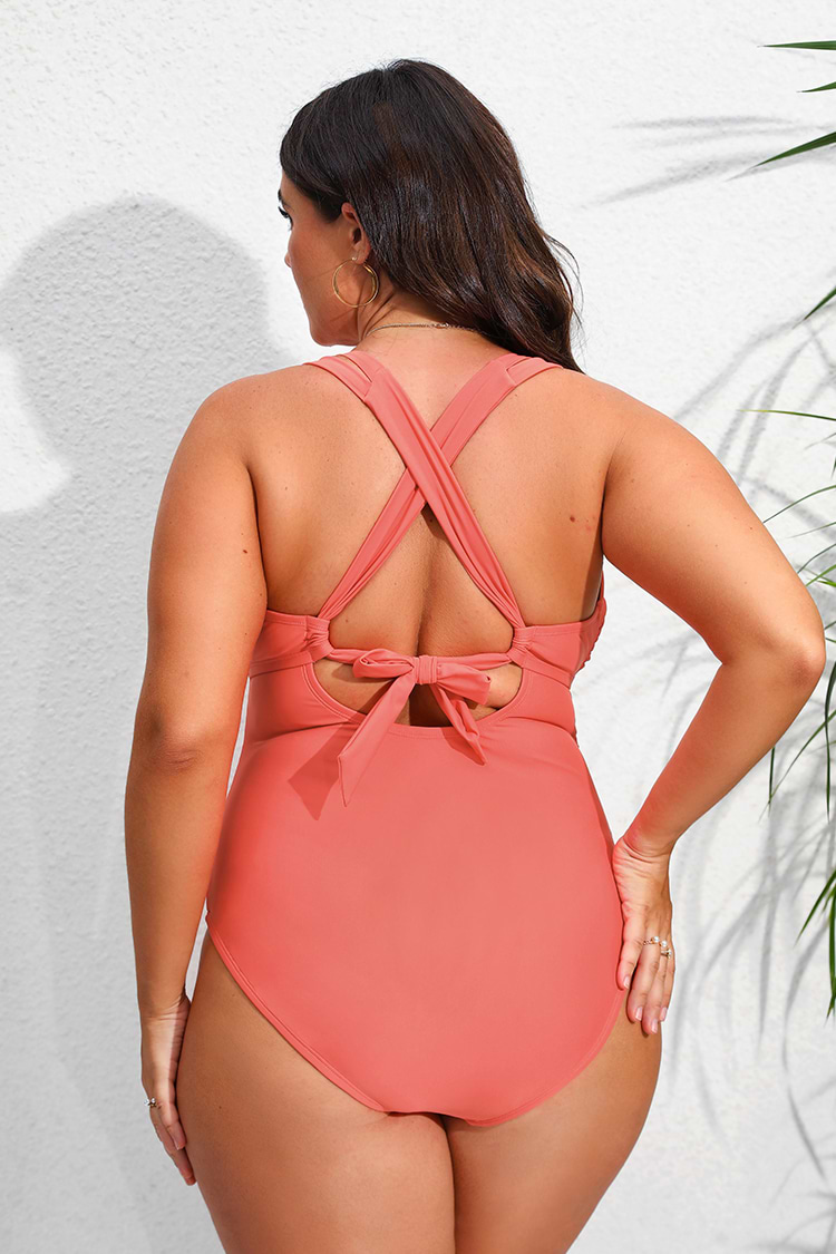HomeTempest Shirred Cutout Tie Back Plus Size Red One Piece Swimsuit