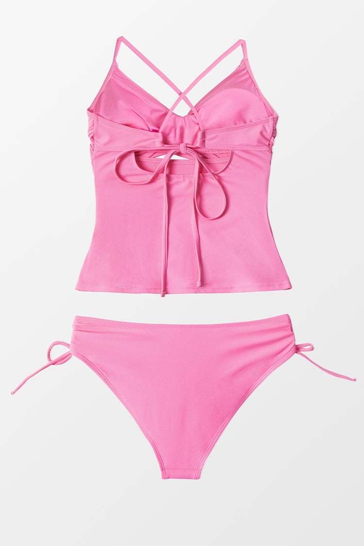 HomeTierra Wrap Criss Cross Side Tie Pink Tankini