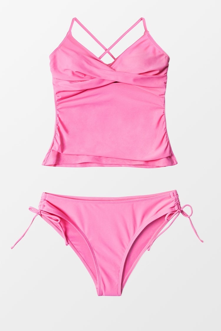 Tierra Wrap Criss Cross Side Tie Pink Tankini