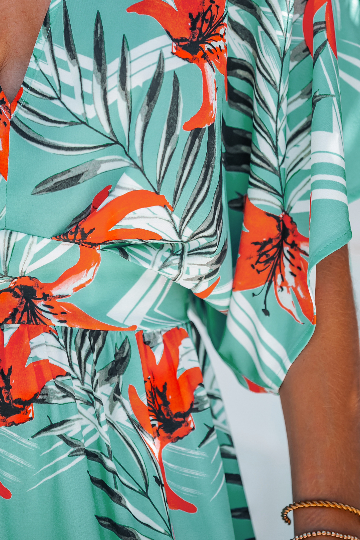HomeTropical Floral Leaf Print Maxi Dress