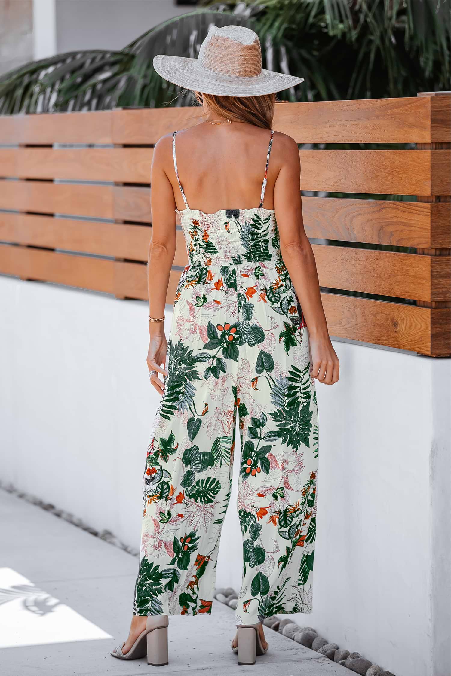 HomeTropical Floral Print Smocked Cami Jumpsuit