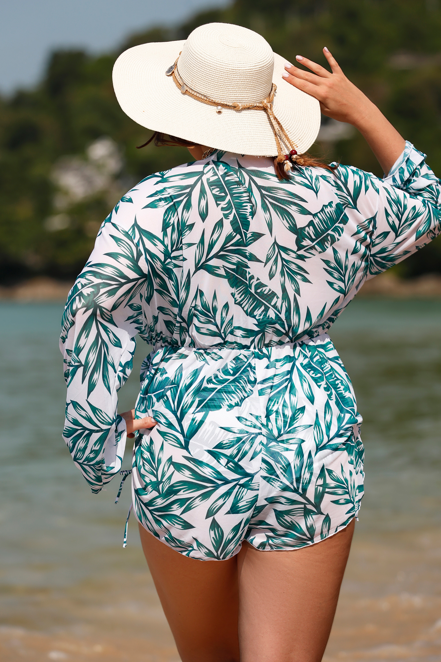 Tropical Leaf Print Bikini & Cover-Up Set - 3 pack