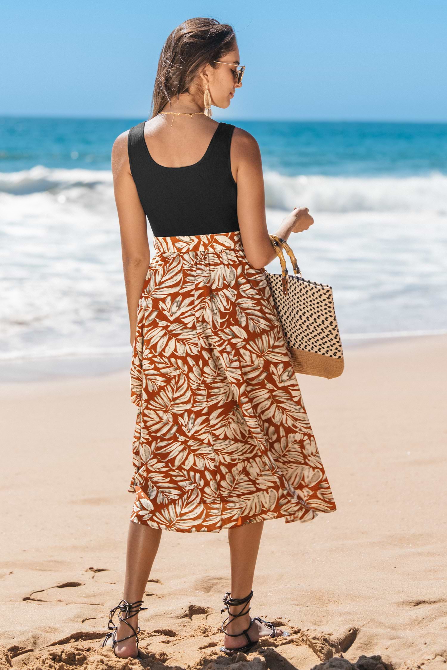 Take on tropical vibes in the Tropical Palms Square Neck Midi Dress! Featuring a flattering square neckline, sleeveless design, and waist tie, this midi offers both comfort and style for sunny days ahead.