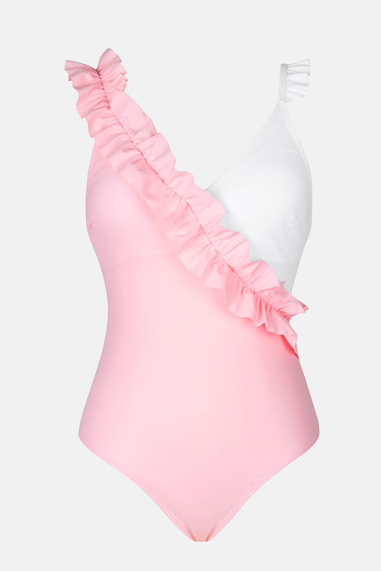 HomeTwo-Tone Ruffled One Piece Swimsuit