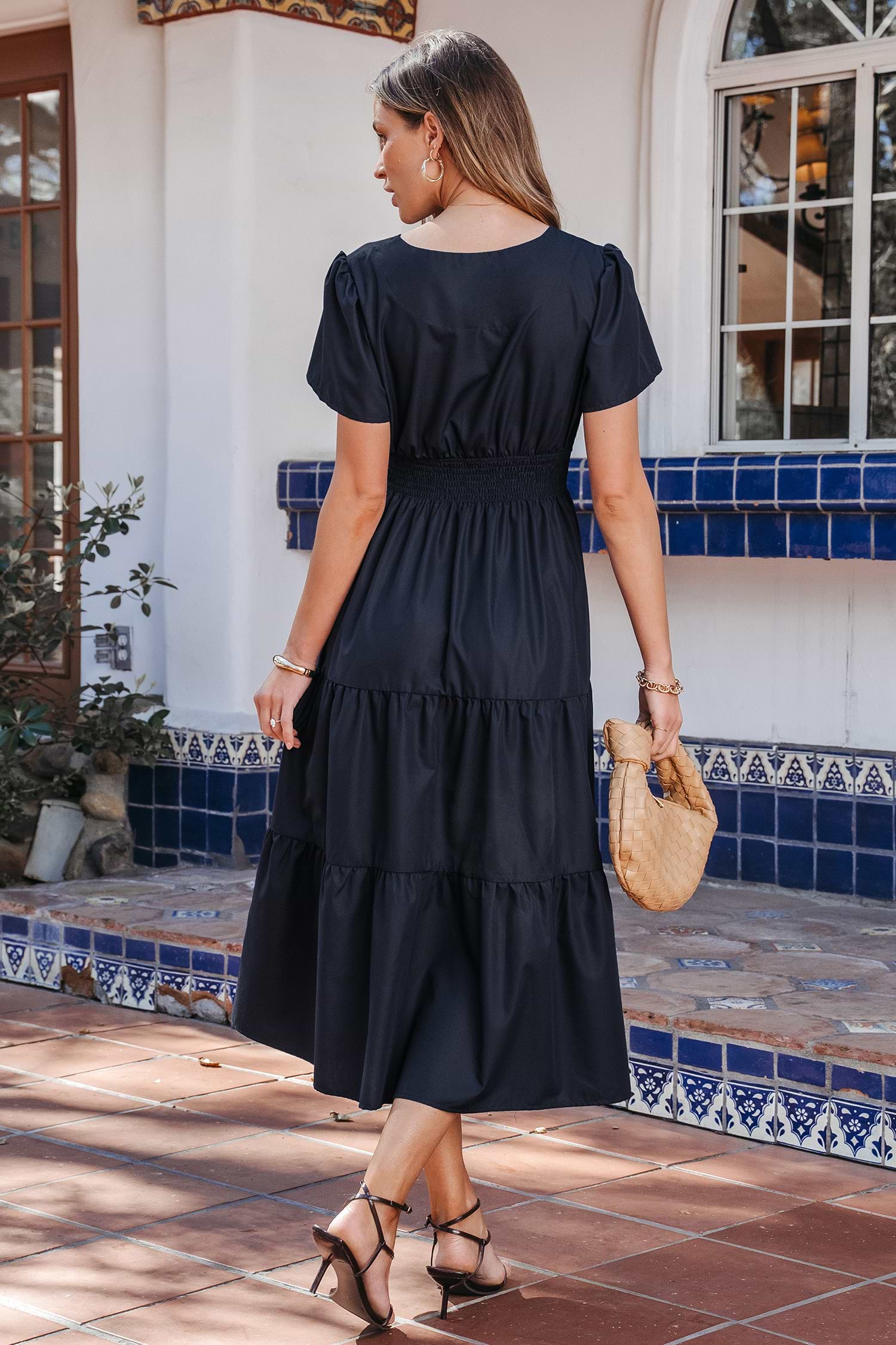 x JoJo Midnight Black Long Sleeve Asymmetrical Dress