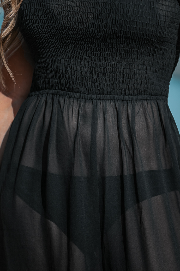 Moonlit Grace Black Cover-Up Mini Dress