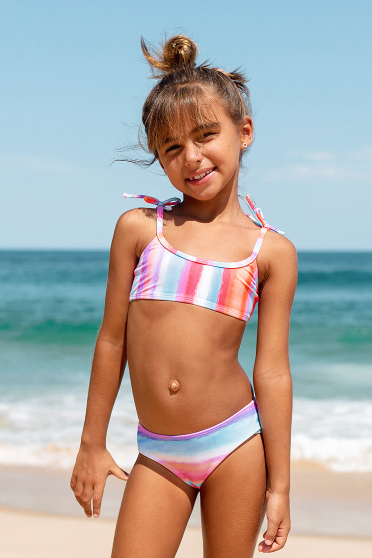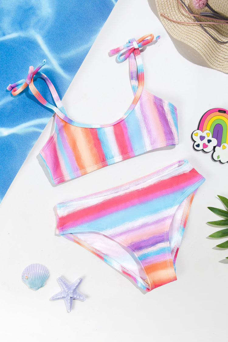 Vapor Wave Faux Tie Bralette And Mid Rise Hipster Bikini Set