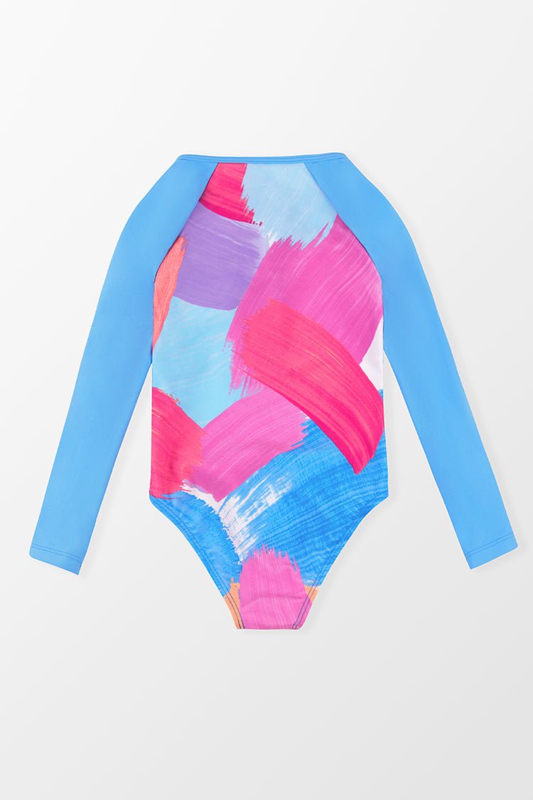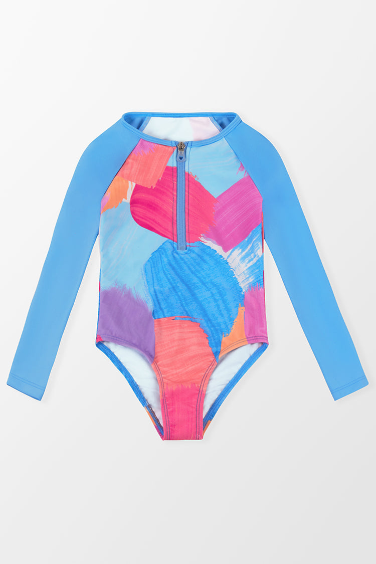 Girls Vapor Wave Front Zip Up Swim One Piece Swimsuit