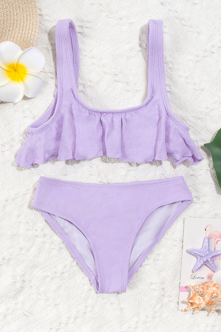 Girls Vapor Wave Floral Ruffled Bikini Set