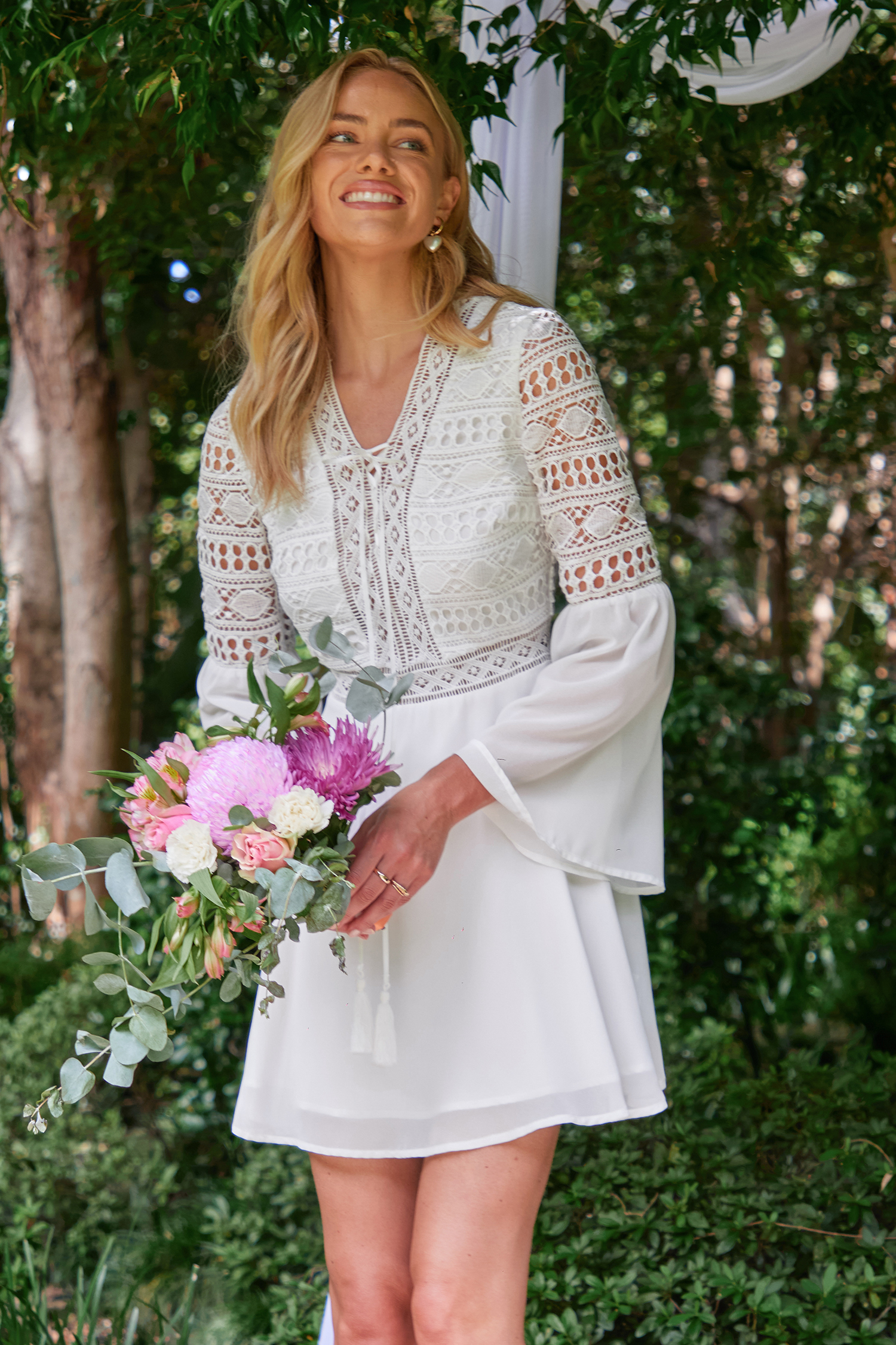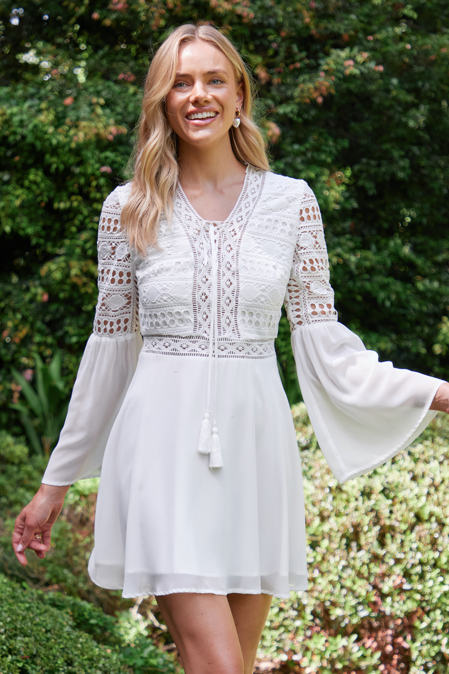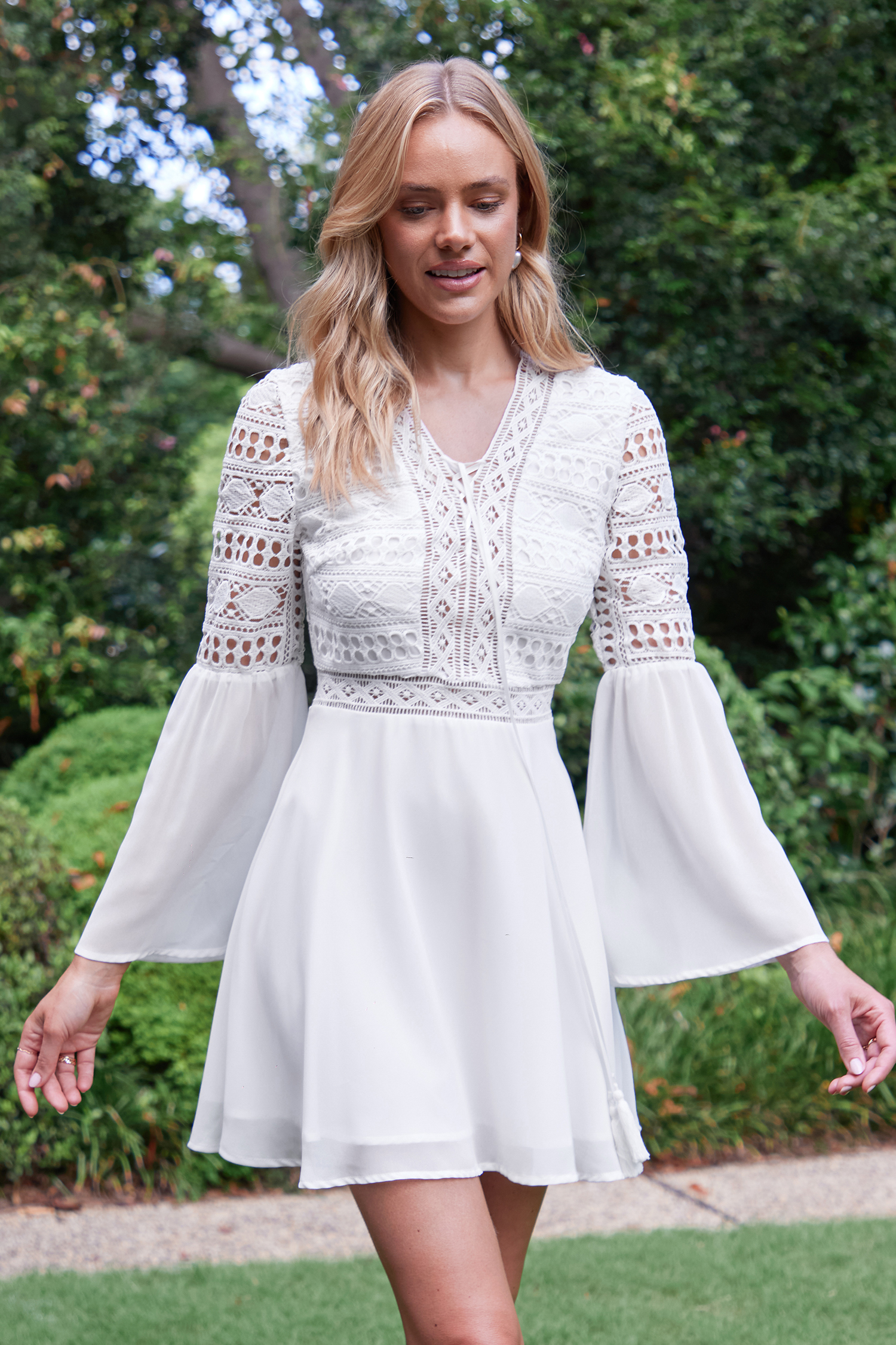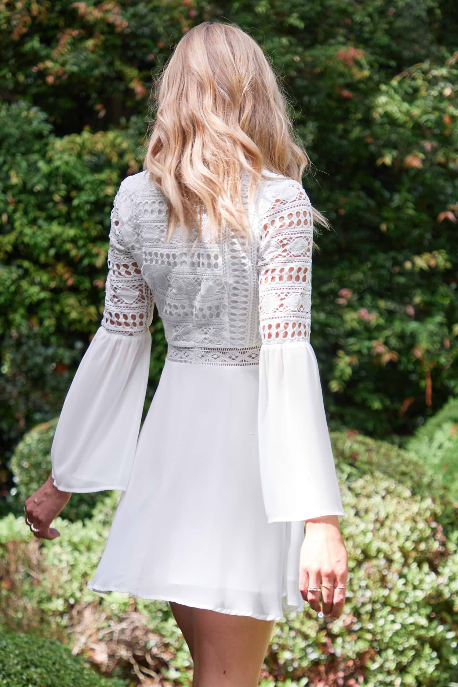 HomeWhite Bell Sleeve V-Neck Mini Dress