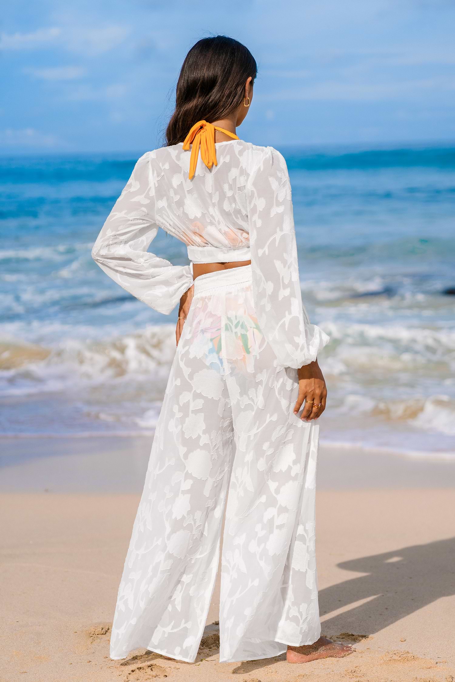 HomeWhite Floral Puff Sleeve Cover-Up Top