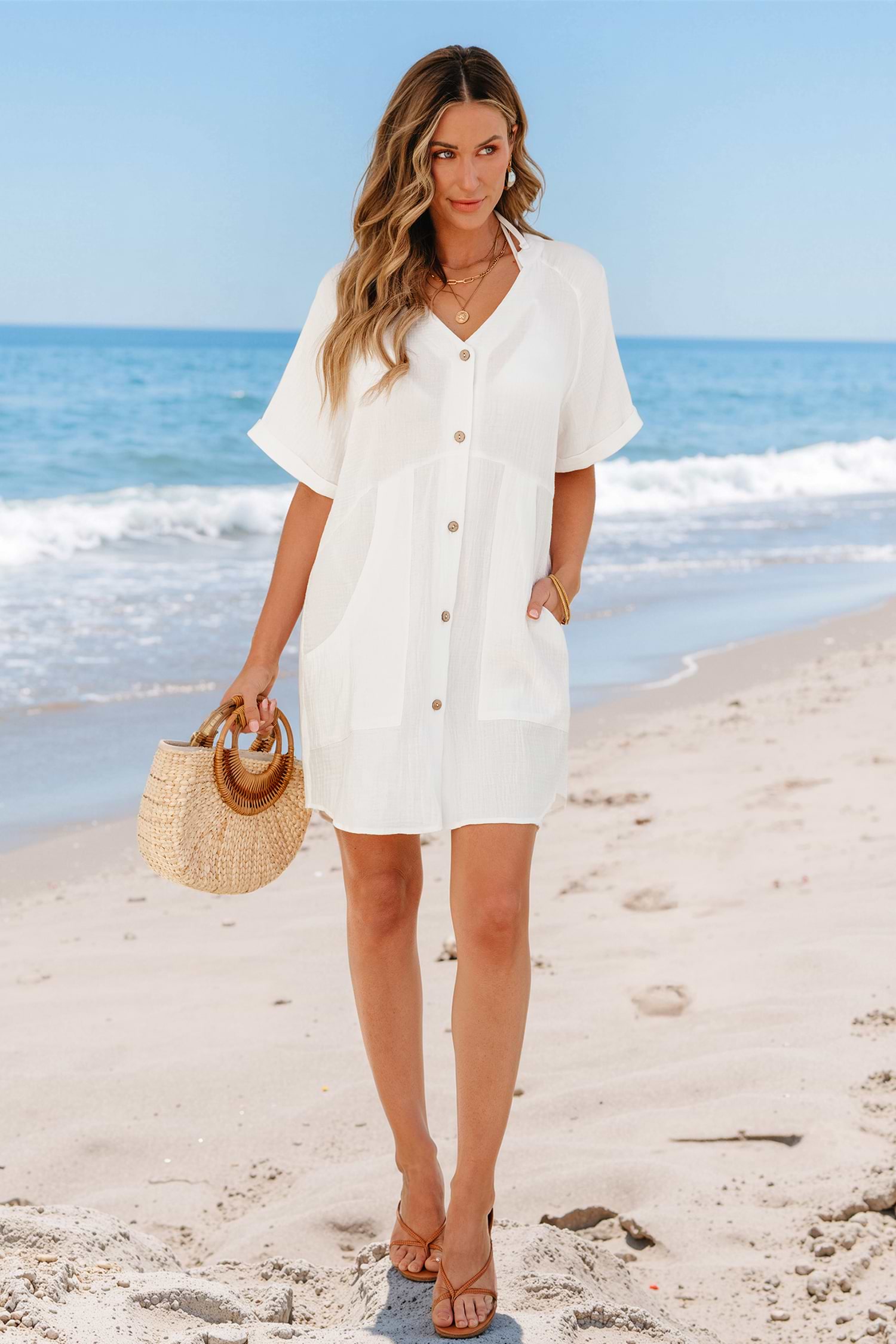 White Button Front Cover-Up Mini Dress