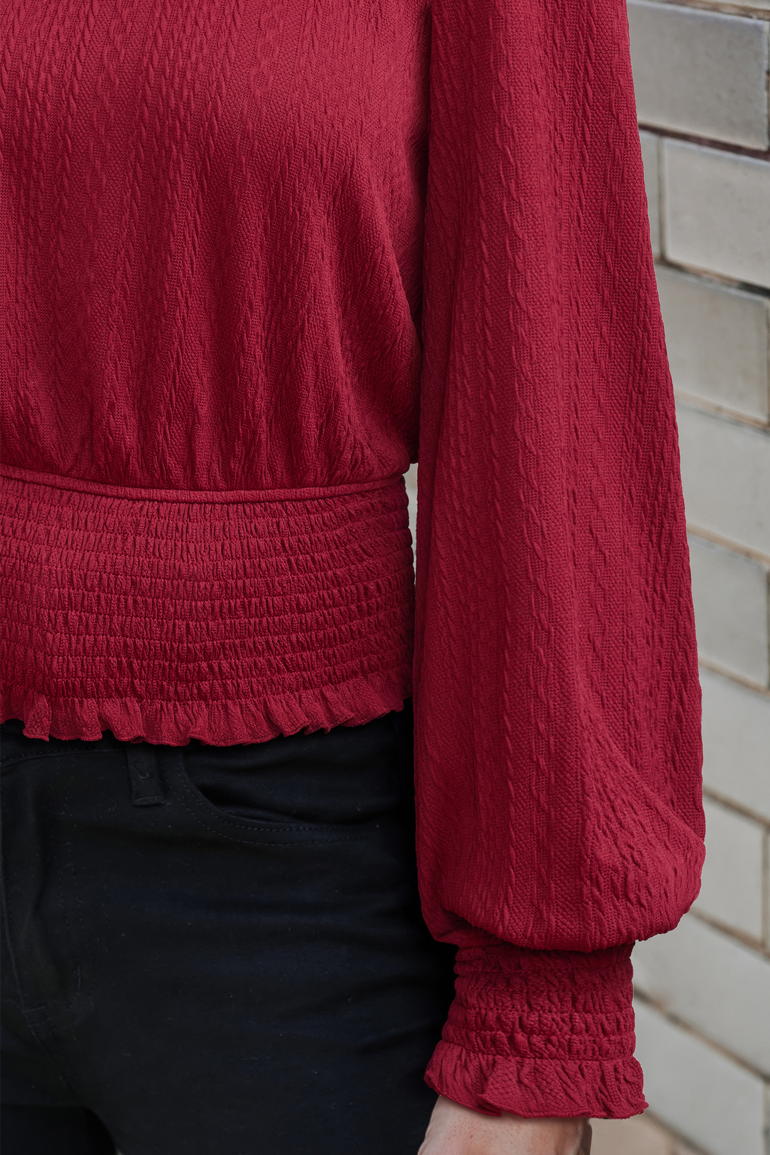The Wicked Red Top brings fiery, flirty energy to any look! The round neckline, long sleeves, and smocked detailing make it the perfect mix of bold and feminine.