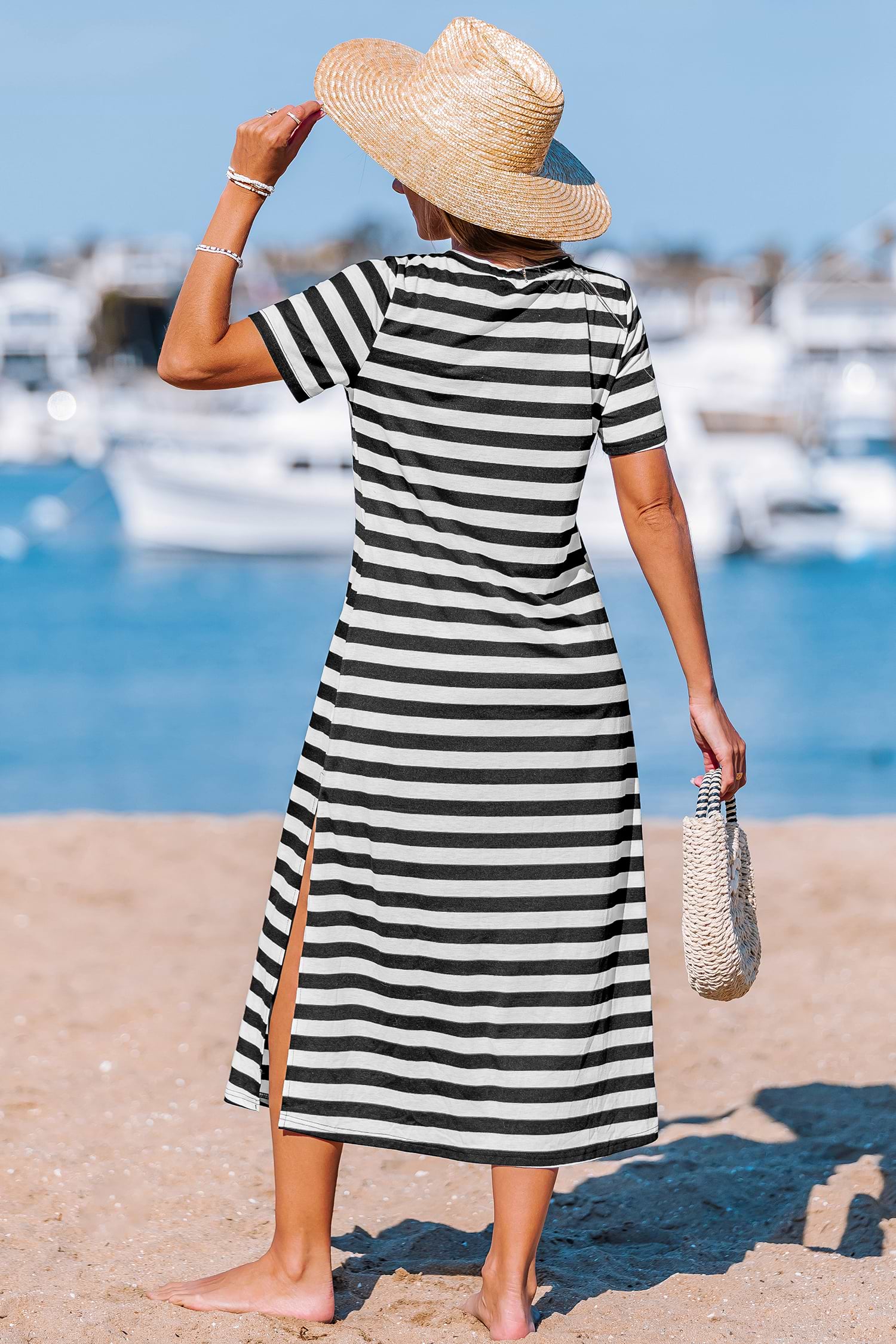 HomeWide Stripe V-Neck Short Sleeve Midi Dress