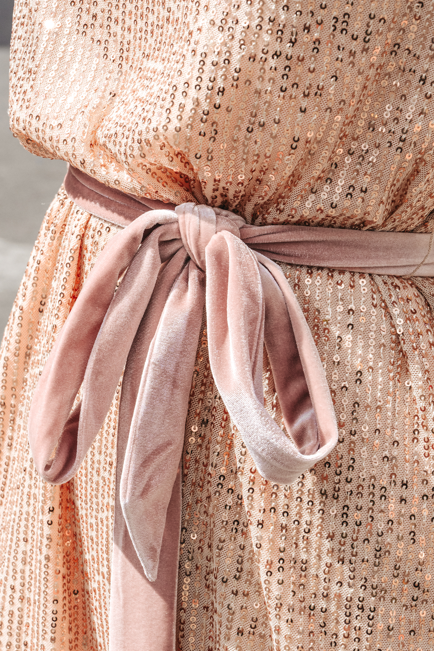 X Gabby Windey Holiday Shimmer Belted Sequin Mini Dress