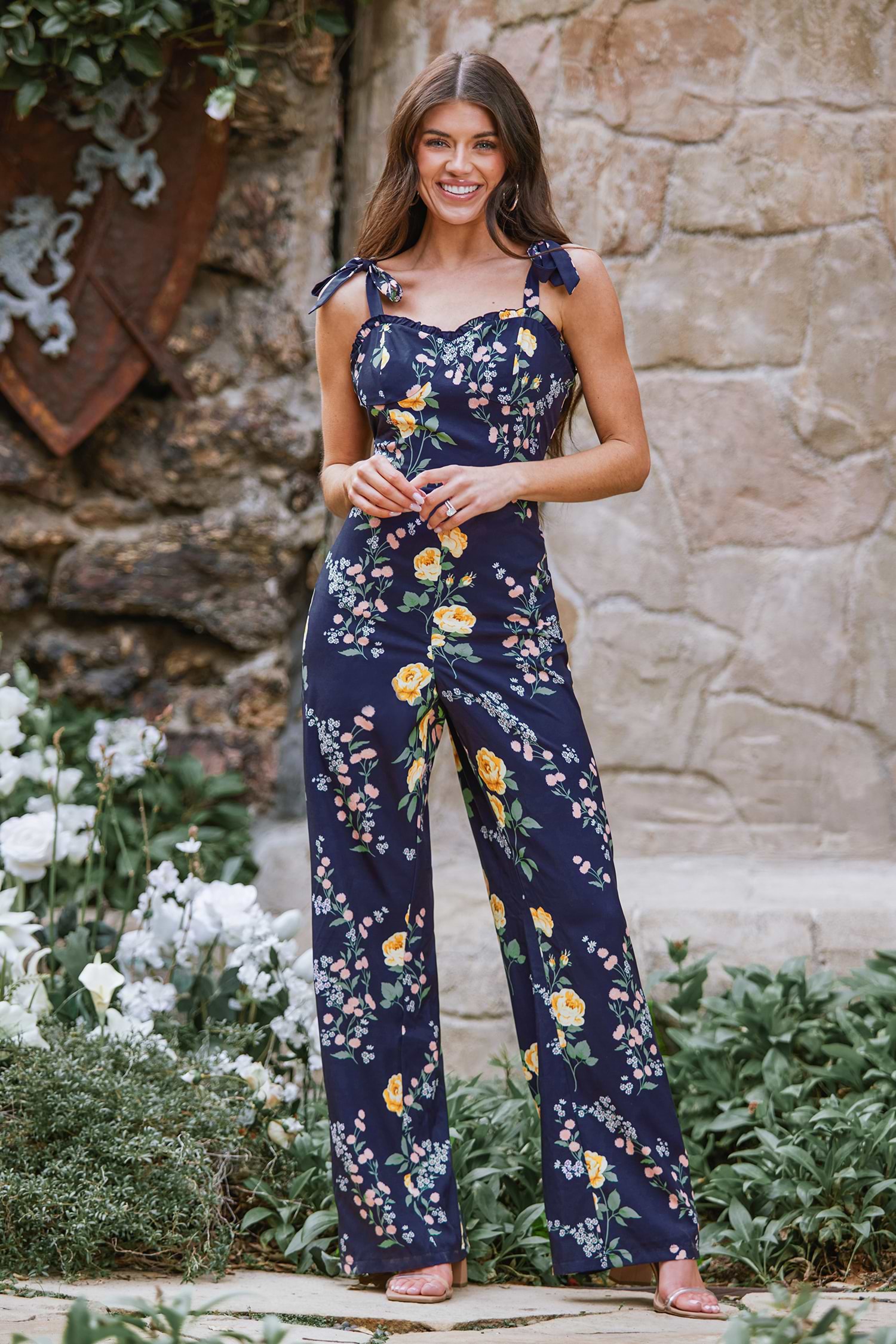 HomeX Madison Bouquet Floral Print Tie Strap Jumpsuit