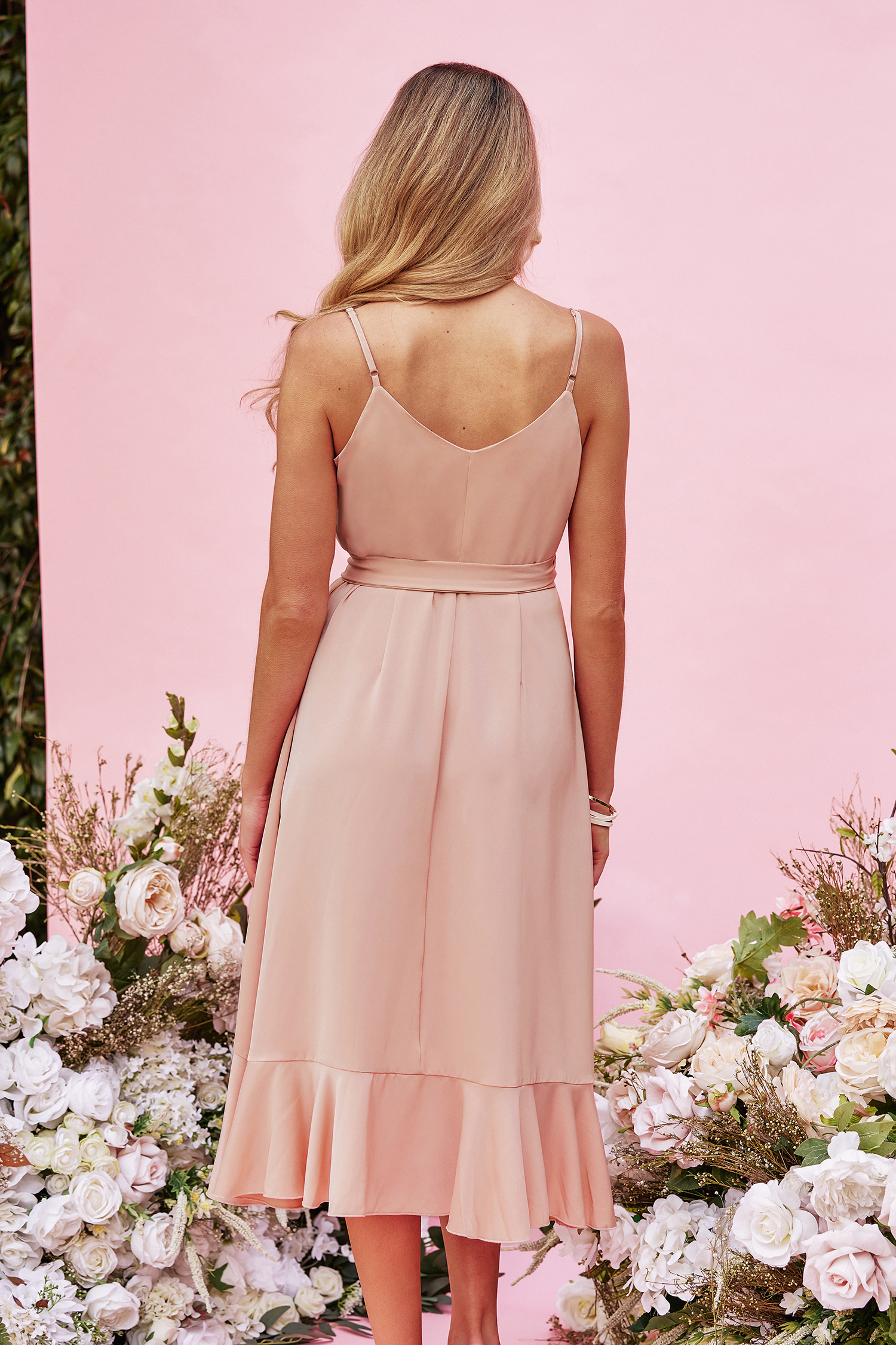 HomeX Madison Honeymoon Ruffled Wrap Midi Dress