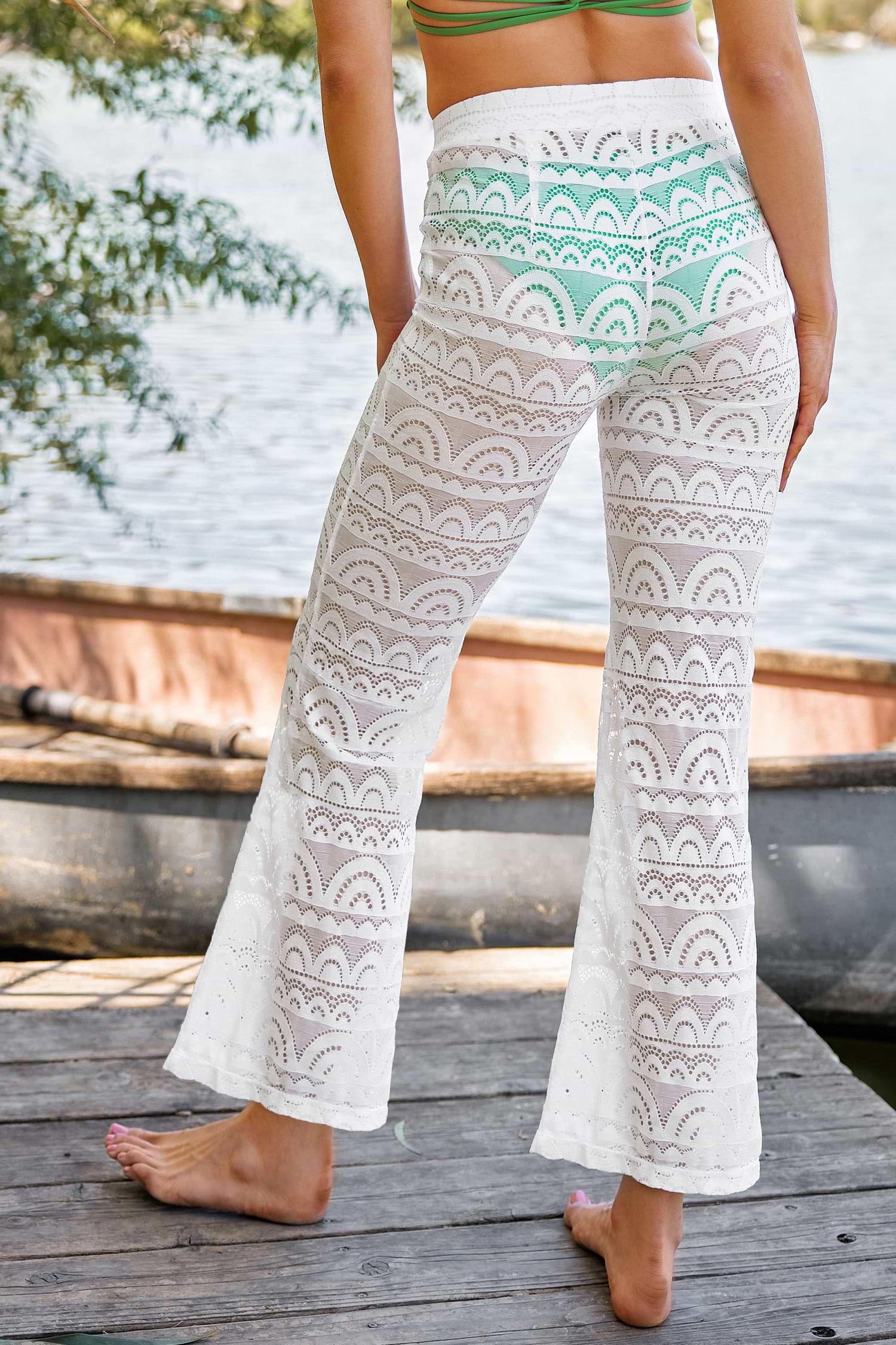 Pearl Lace Cover-Up Flare Pants