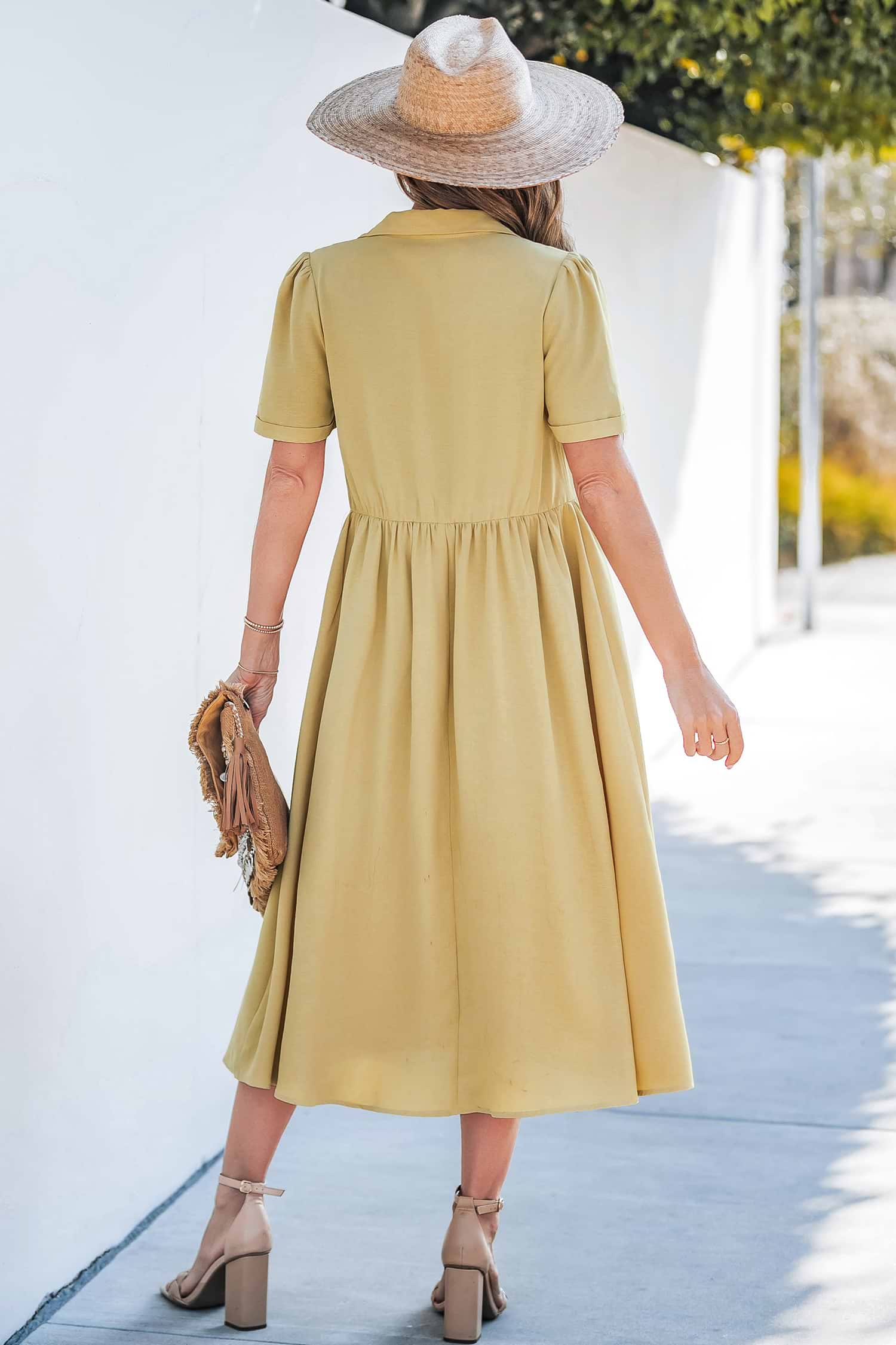 HomeYellow V-Neck Front Button Midi Dress