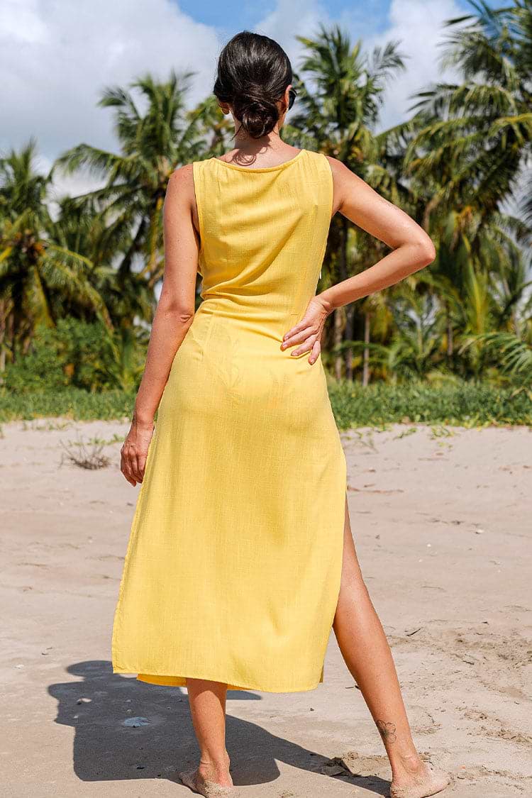 Zaniyah Yellow Tie Waist V-neck Cover Up Dress